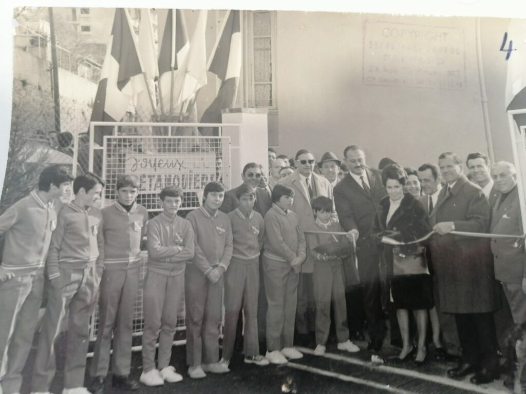 Le club des Joyeux Pétanquiers a été officiellement inauguré en présence de Jacques Médecin, alors maire de Nice, accompagné de M. Charles Erhmann, adjoint aux sports de la Ville de Nice et les Majorettes de Nice.